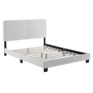 Celine Channel Tufted Performance Velvet Full Platform Bed-White