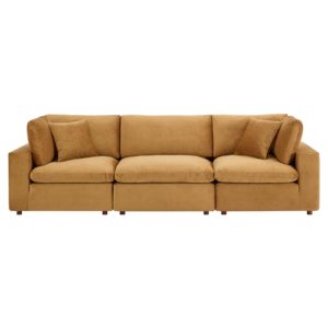 Commix Down Filled Overstuffed Performance Velvet 3-Seater Sofa-Cognac