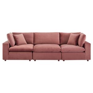 Commix Down Filled Overstuffed Performance Velvet 3-Seater Sofa-Dusty Rose