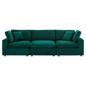 Commix Down Filled Overstuffed Performance Velvet 3-Seater Sofa-Green