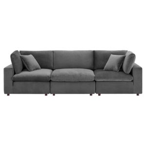 Commix Down Filled Overstuffed Performance Velvet 3-Seater Sofa-Gray