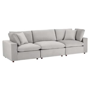 Commix Down Filled Overstuffed Performance Velvet 3-Seater Sofa-Light Gray