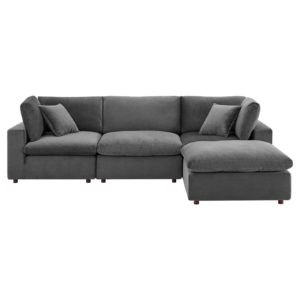 Commix Down Filled Overstuffed Performance Velvet 4-Piece Sectional Sofa