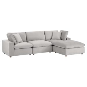 Commix Down Filled Overstuffed Performance Velvet 4-Piece Sectional Sofa-Gray