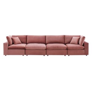 Commix Down Filled Overstuffed Performance Velvet 4-Seater Sofa-Dusty Rose