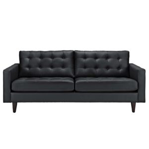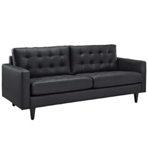 Mid Century Modern Empress Classic Bonded Leather Sofa-Black