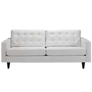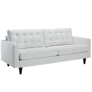 Mid Century Modern Empress Classic Bonded Leather Sofa-White