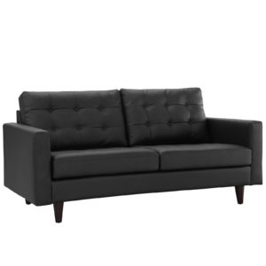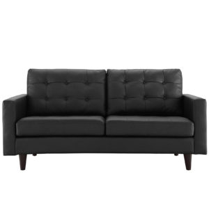 Mid Century Modern Empress Classic Bonded Leather Loveseat-Black