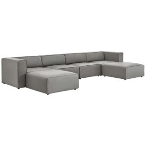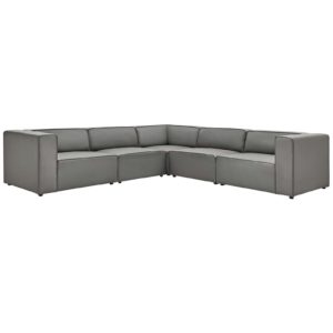 Mingle Vegan Leather 5-Piece Sectional Sofa-Gray