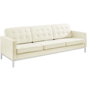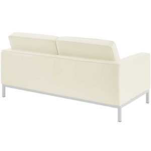 Mid Century Modern Loft Leather Loveseat-Cream White